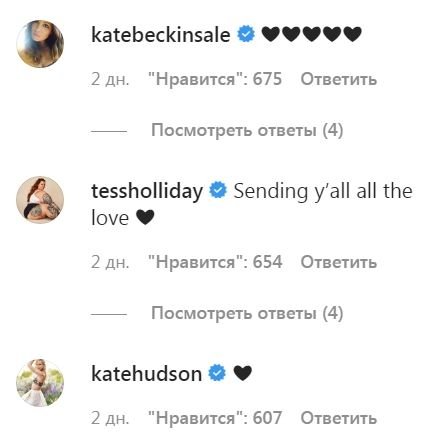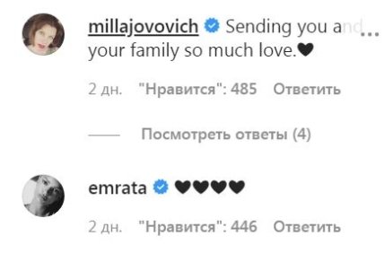 "Передаем вам и вашей семье огромное количество любви", "Сочувствуем и любим вас", "Не перестаю вспоминать о вас обоих", "Скорбим с вами", "Мы так любим вас обоих, все наши сердца с вами" - пишут фанаты.