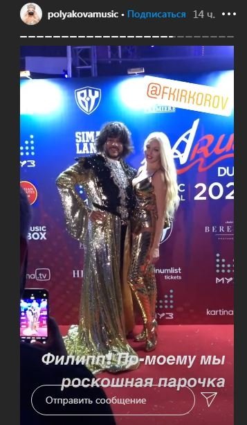 Выступить на PaRUS 2020 украинскую артистку пригласил Филипп Киркоров. Еще в 2019 году артисты договорились выступить вместе на концерте. В одной из сторис Полякова даже называет Киркорова своим талисманом.