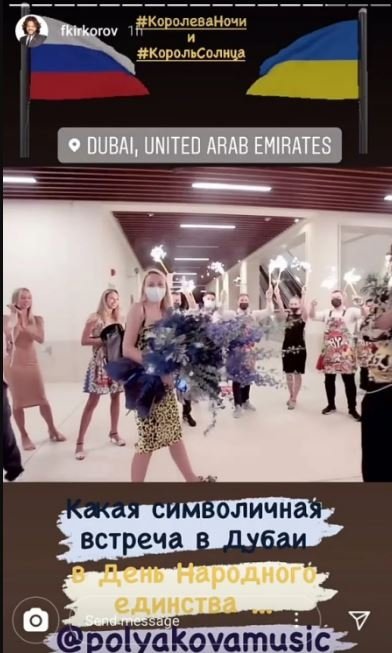 Также, Филипп Киркоров в одной из сторис написал «Какая символическая встреча в Дубае в День народного единства! …Воссоединение!», отметив, что их выступление проходит в российский государственный праздник.