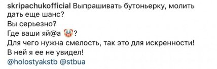 В отличии от остальных, Костя Скрипачук выразил слова благодарности не только Ксении, но и съемочной команде телепроекта.