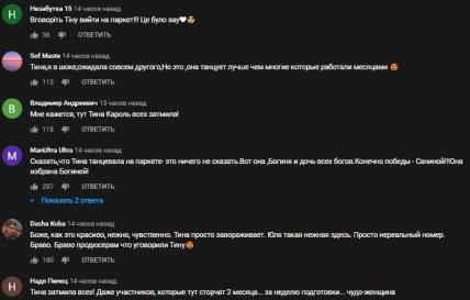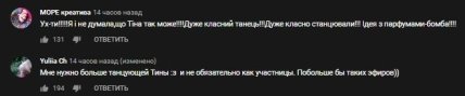 Пользователи YouTube остались довольны выступлением певиц, особенно Тины Кароль, которая за 15 лет впервые вышла на паркет в качестве танцовщицы.