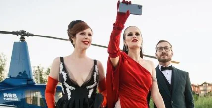 Далее - дефиле-перформанс на Геническом озере, где они занимали "позу фламинго".