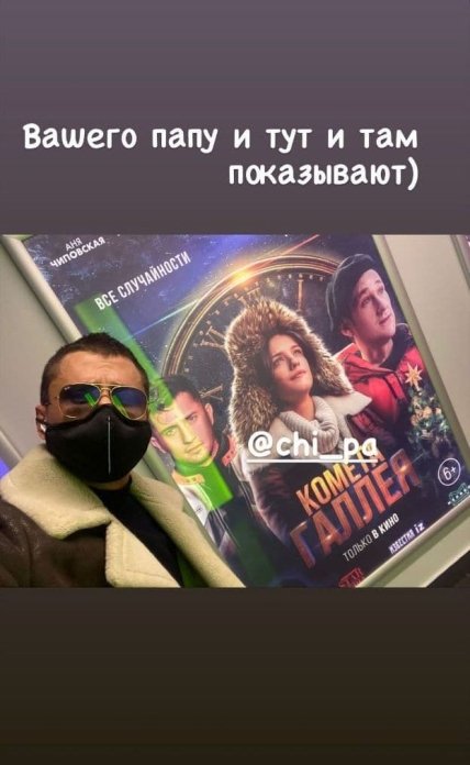 Снимком на фоне постера нового фильма, Прилучный поделился на своей странице в Инстаграм в сторис. На мероприятие артист не показывал свое лицо, а спрятал его под маской и большими темными очками.