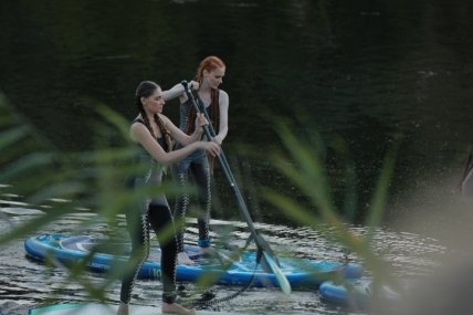 После, модели отправились на самое экстремальное дефиле всех сезонов - дефиле на сапборде. Участницы должны были проплыть по воде, и сделать красивую точку. С невероятно сложным заданием справились все девушки.
