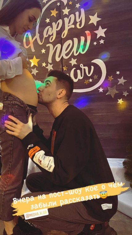 Кроме этого в сториз также есть фото, где Ксения запечатлена с округлившимся животиком, который нежно целует ее любимый Александр.