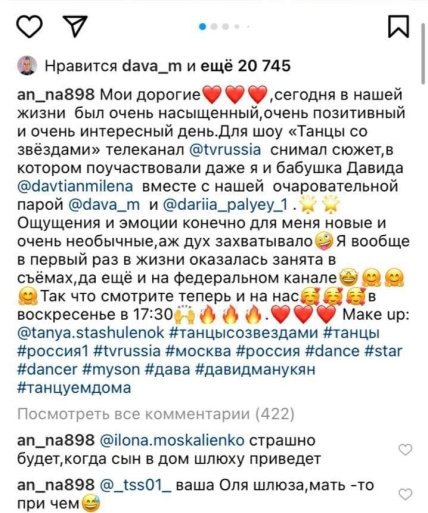 Ранее, “Телеграф” писал, что Бузова скопировала у новой супруги Тарасова Анастасии Костенко подпись к посту.