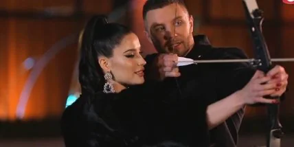 А вот другая участница решила в прямом смысле решила выстрелить Холостяку прямо в сердце. Девушка Анна появилась перед Михаилом со стрелами и луком. Она предложила мужчине пострелять в мишень, на которой было два задания, что он должен был исполнить.