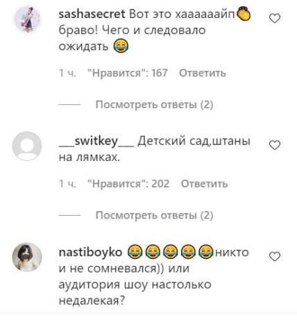 Естественно в комментариях сразу же активизировались, как доброжелатели и поклонники Тимати и шоу "Холостяк", так и хейтеры. Многие пишут, что это "детский сад", да и в сети уже появилось много сливов того, что Тимати выбрал Марию Вебер, с которой сейчас отдыхает на Мальдивах.