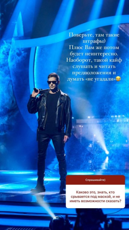 На своей странице в Инстаграм телеведущий решил пообщаться со своими подписчиками и запустил опросник в сторис. Естественно не обошлось без вопросов связанных с шоу "Маска", а именно насколько сложно знать, кто скрывается под маской, но не иметь возможности рассказать об этом.