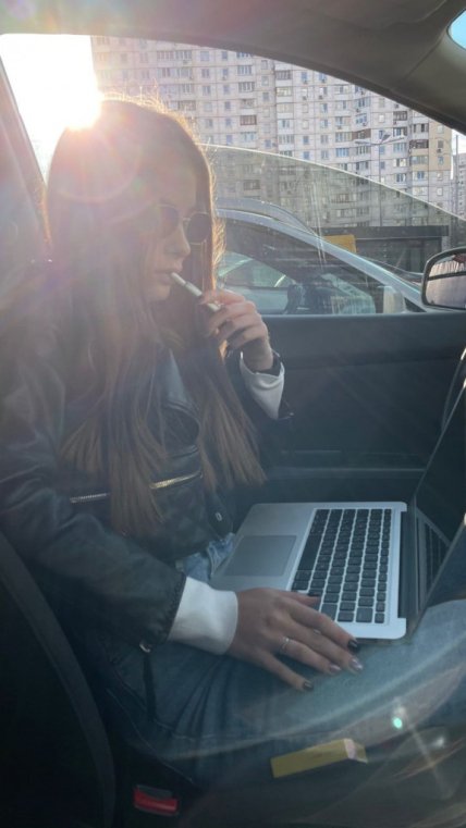 20-летняя актриса недавно выложила сториз Инстаграма снимок, который был сделан в авто. На нем мы можем видеть, как девушка сидит с ноутбуком, курит вейп, а ее безымянный палец правой руки украшает скромное колечко.