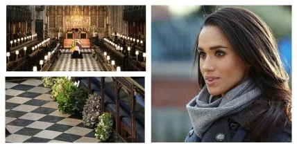 Пурпурный венок Меган и Гарри (второй справа) был изображен в часовне Святого Георгия. Источник фото: Hello!