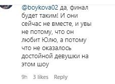 "Вопрос в том, а захочет ли Юля быть с ним после Богдан", - добавила другая подписчица. Далее пошли речи о том, что именно экс-супруга Богдана стала победительницей. Якобы пара уже даже живет вместе.
