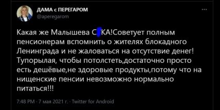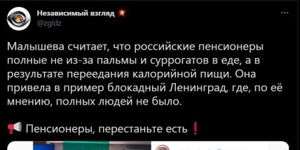 Одна из подписчиц Малышевой пожаловалась, что с тем, какую пенсию она получает, она не сможет потянуть ее диету. Ответ Елены Васильевны шокировал. Малышева заявила, что пенсионеры оправдывают свой лишний вес низкими пенсиями, а сами едят достаточно калорийную еду.