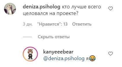 Один из фолловеров решил задать Заливако довольно провокационный вопрос и разузнать, кто из участниц проекта целуется лучше всех. А те, кто смотрят шоу, знают, что этого "добра" там хватает. Михаил решил не отвечать на этот вопрос прямо.