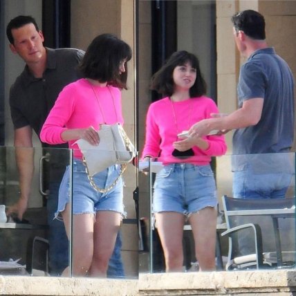 Звезда была в ярко-розовом топе и укороченных джинсовых шортах во время ланча на свежем воздухе в местном кафе в живописной Пальма-де-Майорке, Испания.