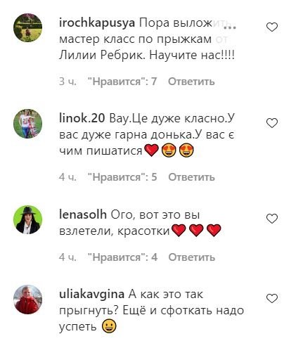 14 мая Лилия показала, как ее старшая дочь Диана пытается повторять за звездной мамой ее "коронный прыжок". Стоит отметить, что у Ребрик хорошая растяжка, и это неудивительно, ведь они с ее супругом, танцором Андреем Диким, постоянно танцует.