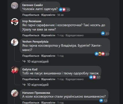 В комментариях на Елену обрушился шквал критики. Многие отметили, что такой крой рубашки, как на Владимире называется косоворотка, и является элементом российского народного костюма.