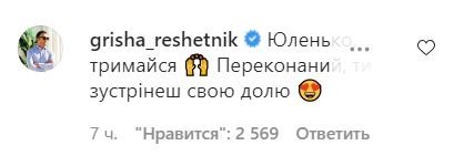 В комментариях ее подписчики начали поддерживать свою фаворитку. Одним из первых был ведущий шоу Григорий Решетник, который уверил девушку, что та еще встретит свою судьбу.
