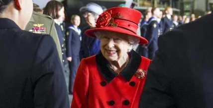 В красном наряде и брошью от принца Филиппа: Елизавета II посетила авианосец (фото, видео)
