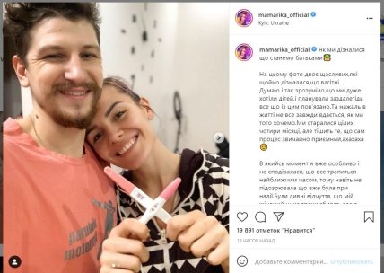 Известная украинская R'n'B-певица Mamarika, настоящее имя которой Анастасия Кочетова, и ее супруг комик Сергей Середа 26 мая объявили, что вскоре впервые станут родителями. Пара с осени хранила эту тайну, и вот только в конце весны решилась таки рассказать свой секрет.