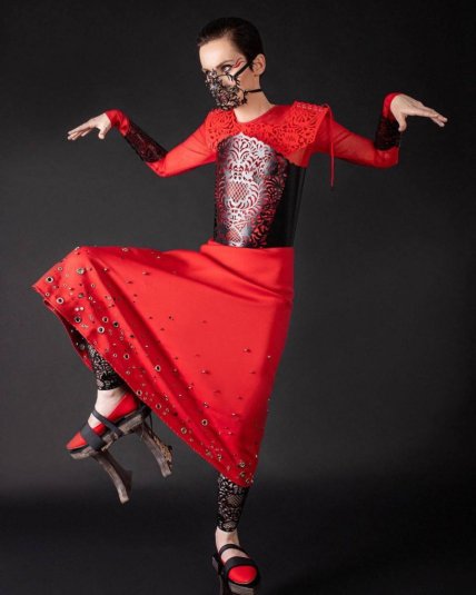 Исполнительница приняла участие в яркой фотосессии в дизайнерской одежде от DSHUS, Finch, Polina Veller. Павленко позировала в красном платье с черным корсетом и на очень высокой деревянной платформе, в оригинальной ажурной маске.