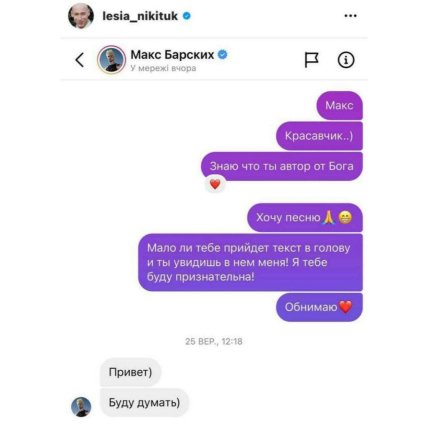 Так, фото на аватарке хакеры сменили на снимок журналиста Дмитрия Гордона. Последние публикации носят бессмысленный характер, а следующими постами оказались скриншоты переписки с известным "Холостяком" Михаилом Заливако и певцом Максом Барских. Подписчики забили тревогу, ведь подобное телеведущая никогда не выставляет.