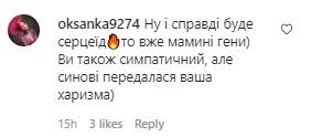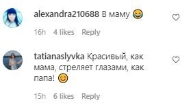 "Красавчик", "Очень красивый сынок у вас", "Мамина копия", "Красивый, как мама, стреляет глазами, как папа", - отметили фолловеры в комментариях.