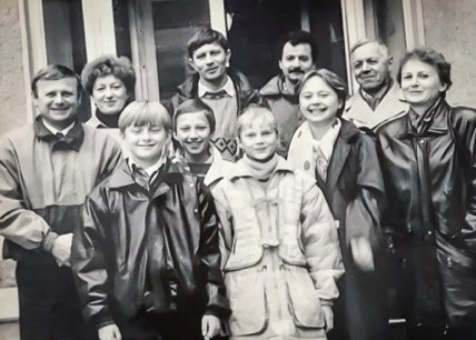 "На фото 1995 года - вся наша семья: папа Степан, мама Галина, сестра Олеся, дед Алексей, мамин родной брат Петр, папина родная сестра Зеня, двоюродная сестра Оксана, двоюродный брат Иван и мой учитель по вокалу Михаил Михайлович Русин"