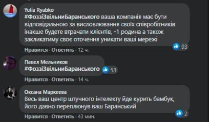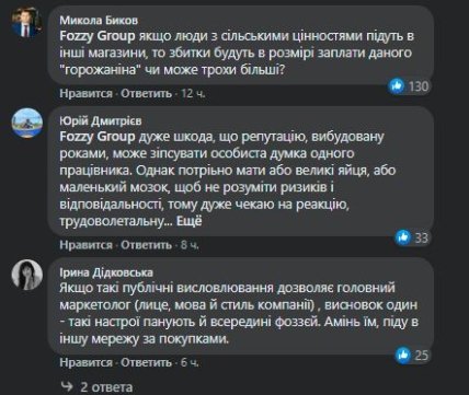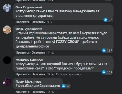 В тоже время, под постами на странице компании Fozzy Group пользователи призывают уволить маркетолога.