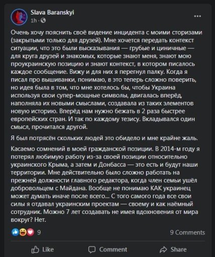 Баранский уже извинился за оскорбительные для украинцев посты.