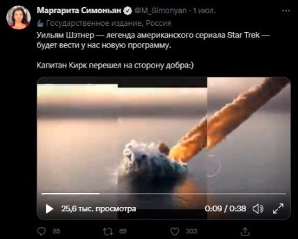 Глава российского телеканала RT Маргарита Симоньян, которая недавно призналась в зависти к тотаритарному управлению Лукашенко в Белоруси, на днях анонсировала запуск программы о космосе, которую должен будет вести известный 90-летний канадский актер Уильям Шетнер, известен исполнением роли капитана Кирка в классической версии культового сериала "Звездный путь" (Star Trek, Стартрек).