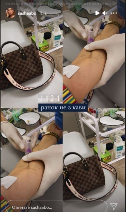 На своей странице в Инстаграм, где девушка активно освещает свою жизнь, Саша разместила снимок, на котором видно, как ей делают укол, или же берут кровь. Снимок блогер подписала: "Утро не с кофе", не уточнив, что именно за процедуру ей делали.