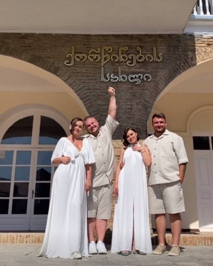 Роспись пары прошла в маленьком городке в восточной части Грузии - Сигнаги. Интересно, что поженились также и пара их близких друзей.