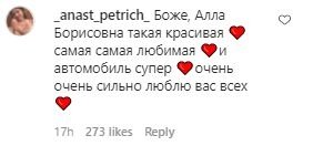В Инстаграме 45-летний мужчина опубликовал ролик, на котором Алла Борисовна сидит за рулем ретроавтомобиля "Запорожец" 1964 года выпуска. Машина, подаренная супругом, была украшена яркими цветами.