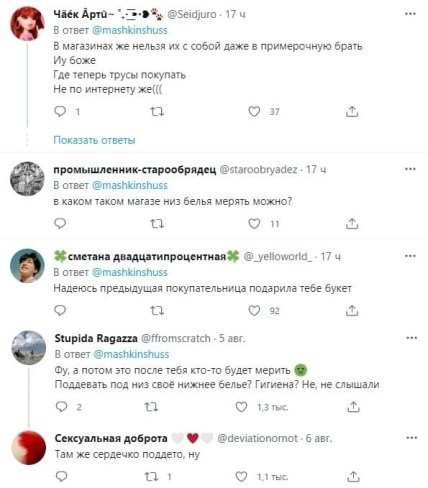 Другие пользователи обвинили девушку в негигиеничности за то, что меряет белье в магазине на голое тело, а некоторые даже пожелали ей “подцепить болезней”.