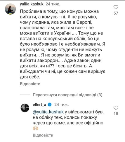 Как именно выехал из Украины во время полномасштабной войны, Эллерт не разъясняет. В одной из Instastories отвечал, что выехал "через границу со штампом в паспорте". В комментариях упоминал, что причина выезда – официальная, говорит, что был в военкомате.