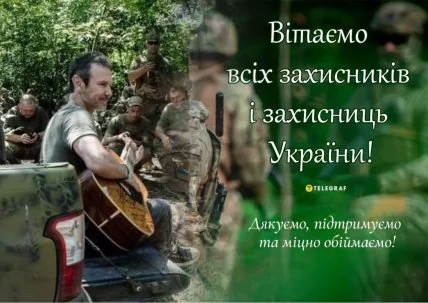 "Дорогие защитники и защитницы! На самом деле, нет слов, чтобы выразить вам все уважение и благодарность за вашу великую миссию. Но на фронте важна не красота слов, а их искренность. Так что скажу вам откровенно: с праздником! Вместе к Победе! Слава Украине!", — написал лидер группы "Океан Эльзы" в Инстаграме.